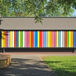 The main design concept derives from the existing kindergarten’s lack of play equipment. The new façade solves this weakness by offering a play element along all three exterior walls. It consists of dark brown roughcast and timber slats revolving around their vertical axe. The slats are the colour of natural wood on one side but painted into nine different bright colours on the other side. Aside from serving as a shading element, the toy slats provide for children’s play and learning: as the children manipulate the colourful wooden planks they get to know different colours, experience wood as a natural material and constantly change the appearance of their kindergarten, all at the same time.